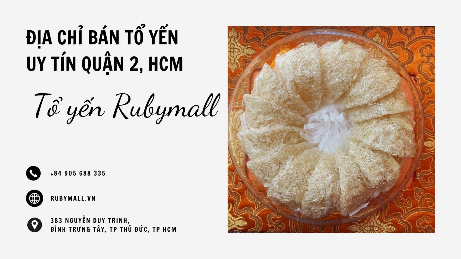 Tổ yến được biết đến là một thực phẩm bổ dưỡng, mang lại nhiều lợi ích cho sức khoẻ. Nhu cầu tiêu thụ sản phẩm giàu dinh dưỡng này ngày một lớn tại Việt Nam và từ đó nhiều hành vi ‘gian thương làm giả yến sào’ ngày càng tinh vi và phổ biến hơn. Vì vậy hãy theo dõi bài viết dưới đây, Tổ yến sào Rubymall sẽ giúp bạn khám phá những địa chỉ bán tổ yến uy tín quận 2, HCM.